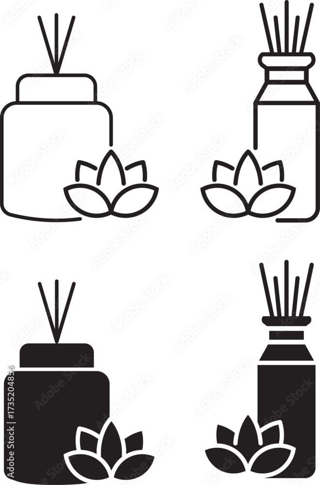 Aromatherapy icons symbols essential oil diffuser elements #1735204856