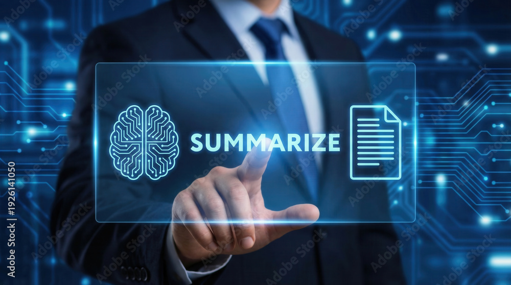 Artificial intelligence brain data network summarize concept glowing interface #1926141050