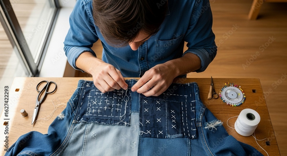 Artisan Denim Repair Hand-Stitched Patchwork and Sashiko Techniques #1627422293