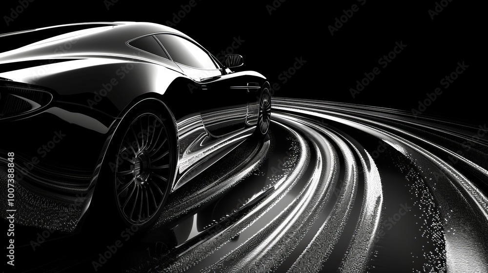 Artistic capture of car suspension featuring spirals and curves in light black and indigo tones #1007388848