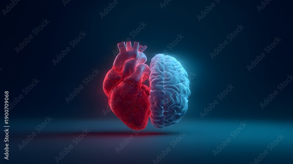 Artistic depiction of human heart and brain, representing emotions and intellect. #1900709068