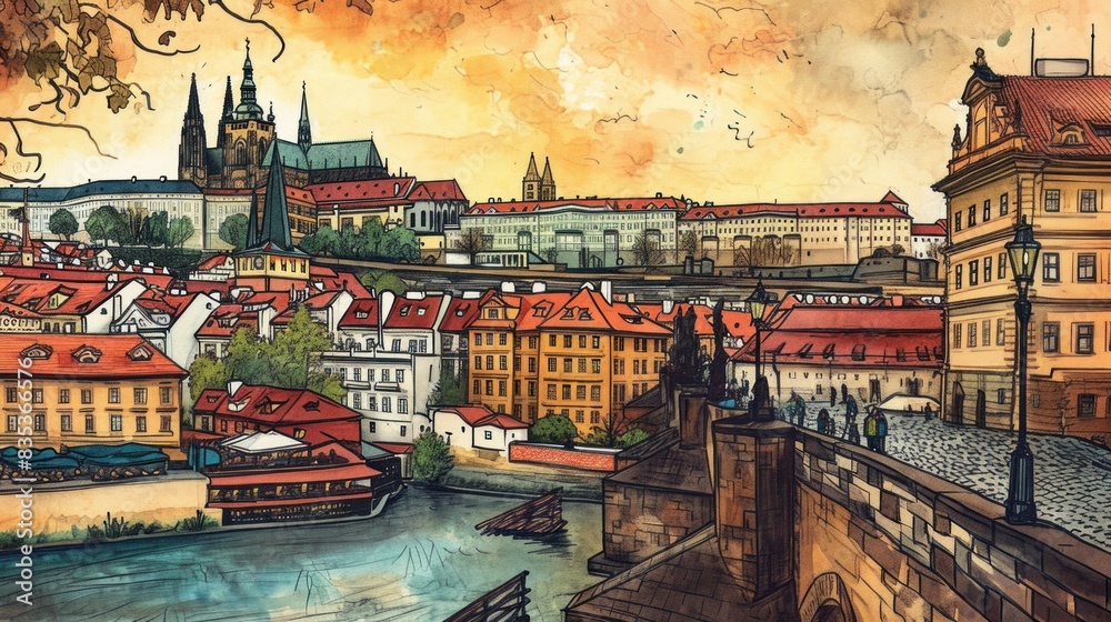 Artistic illustration of Prague city. Czech Republic in Europe. #835366576