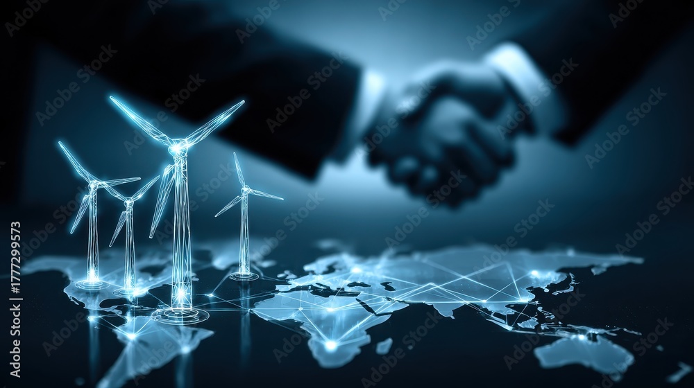 Artistic scene of people collaborating through partnership efficiency and sustainable renewableenergy to achieve operation harmony and value in society #1777299573