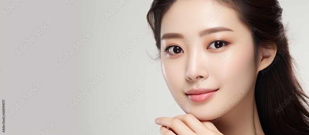 Asian woman advertising new cosmetic product #668094077