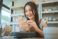 Asian woman painting ceramic art and pottery designs in her studio – happy artisan potter sitting with handmade tools, enjoying sculpting process and creative small business lifestyle #1819162880