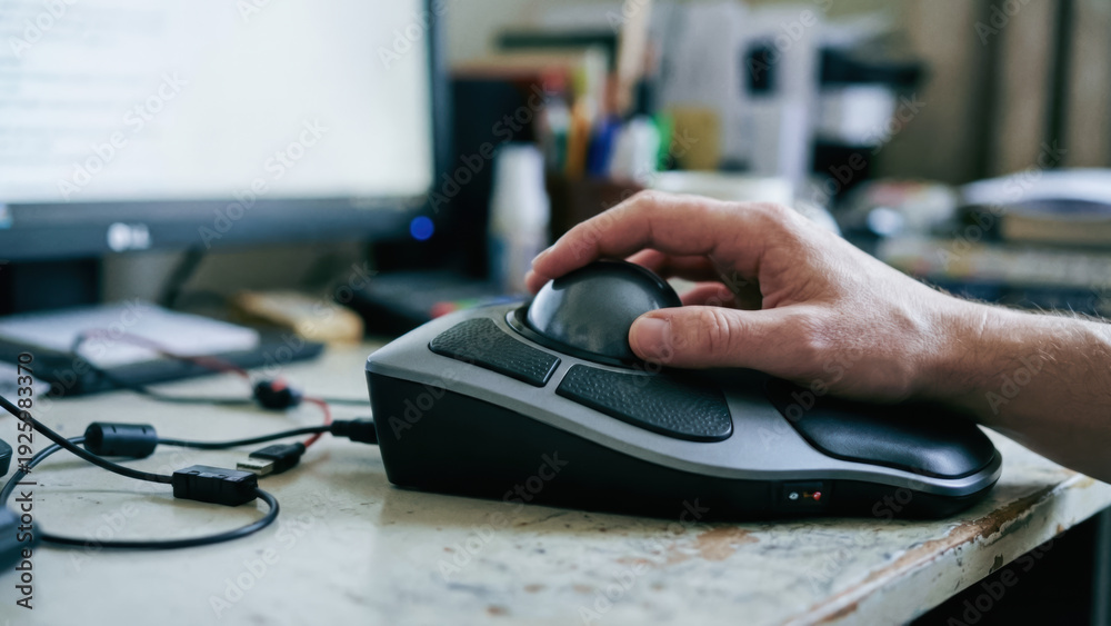 Assistive technology mobility neuro control disability desktop workspace hand trackball device focus productivity independence support #1925983370