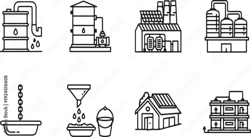 Assorted icons representing various industries and manufacturing processes Vector #1924516608