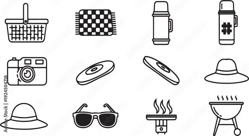 Assorted icons representing various outdoor and travel items Vector #1924504718