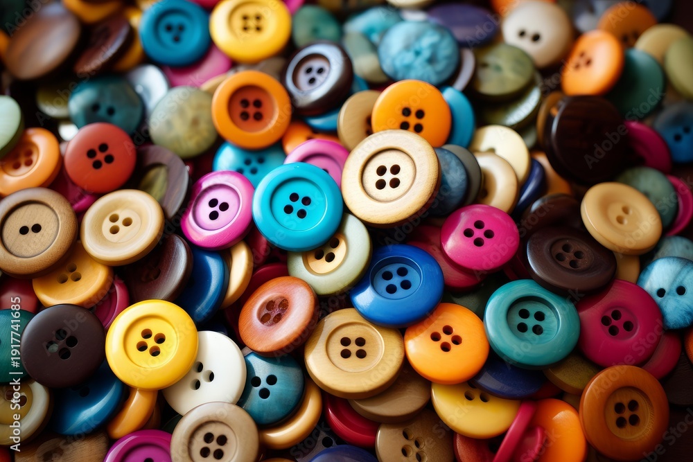 Assorted sizes and hues of buttons forming a textured background for craft and fashion #1917741685