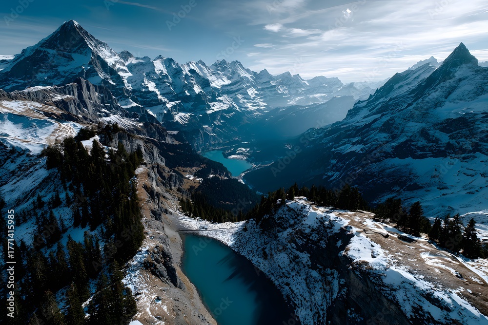 Atemberaubende Alpenlandschaft mit See zwischen schneebedeckten Gipfeln #1771415985