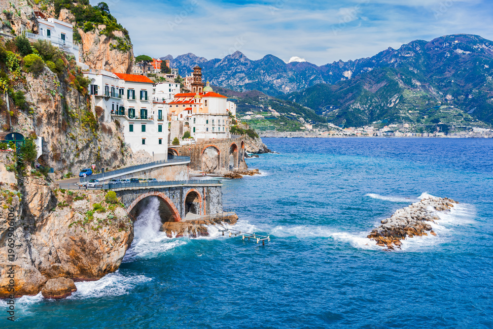 Atrani, Italy. Costa Amalfitana, colorful village on Mediterranean Sea #1969906106