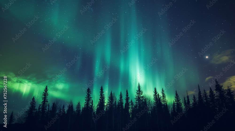 aurora borealis, northern lights, lapland, Winter landscape Majestic northern lights dance in starry sky #752567228