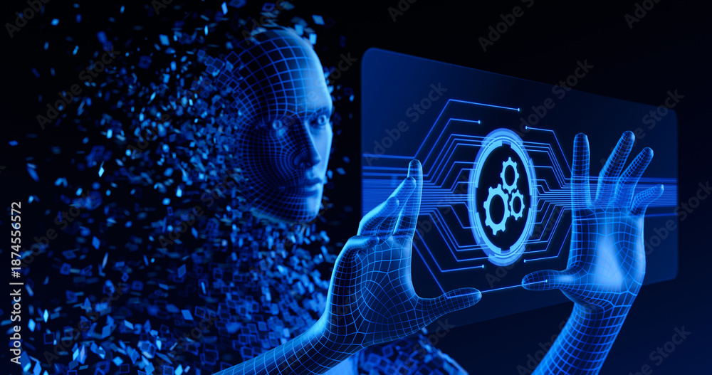 Automation and Artificial Intelligence. Human Digital Avatar or AI agent touch screen #1874556572