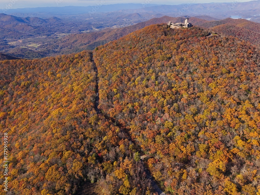 Autumn landscape view of fall colors at Blue ridge mountains in North Georgia. #1775915928