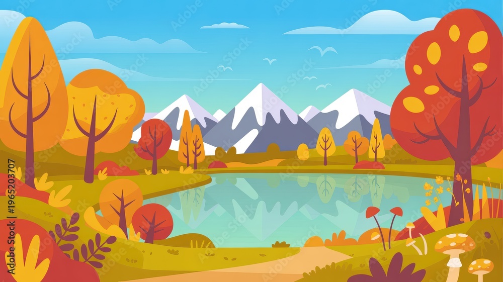 Autumn landscape with lake, trees and mountain scenery #1965203707