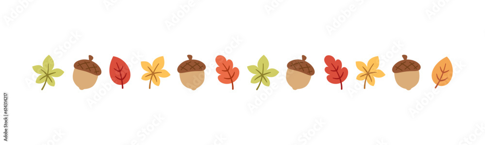 Autumn leaves and acorn separator border for Fall and Thanksgiving season. Vector isolated on white background. #614314217