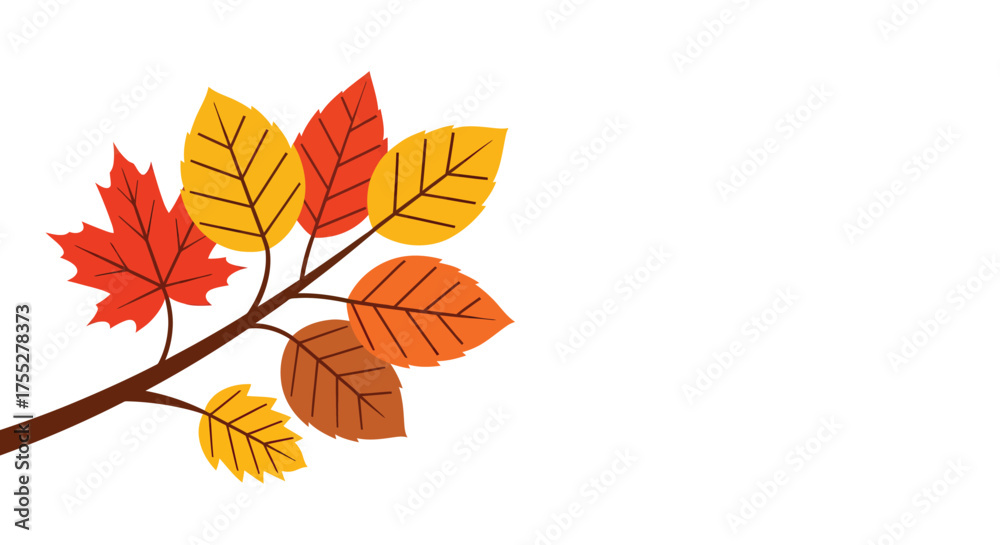 Autumn leaves branch displaying vibrant colors against a white backdrop, showcasing the beauty of the fall season with warm tones and a minimalist aesthetic. #1755278373