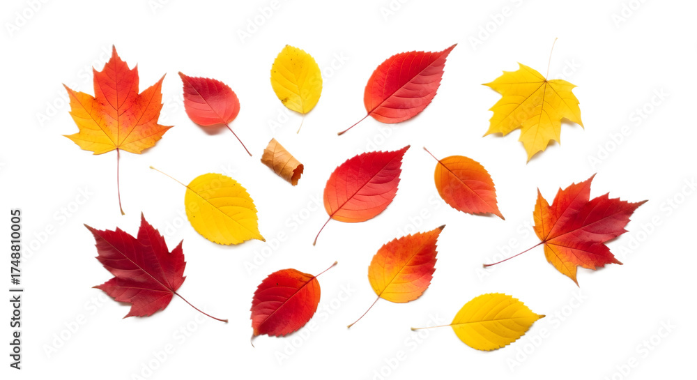 autumn leaves isolated on white background, flat lay, nature concept, seasonal foliage, top view #1748810005
