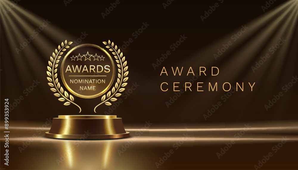 Award ceremony nomination name podium, golden prize event, scene star ceremony. Vector illustration #899353924