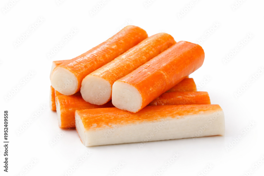 Bâtonnets de surimi sur un fond blanc #1952409558