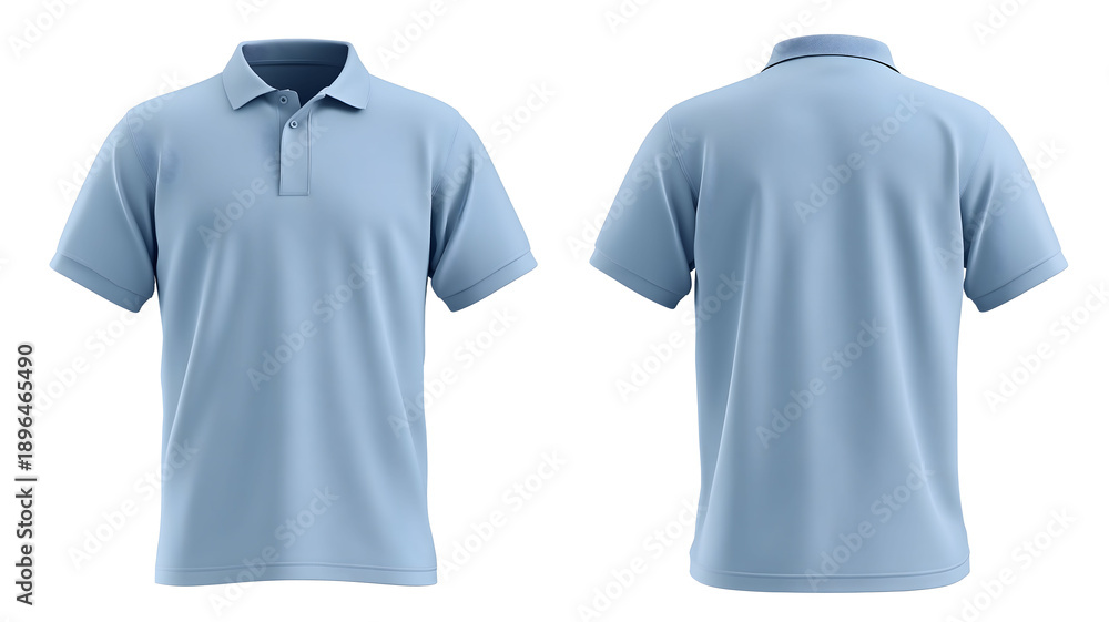 Baby blue polo shirt ghostmannequin mockup with front view and back view isolated on white background #1896465490