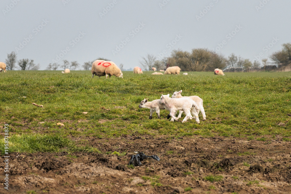 Baby Sheep and family in grassland, Mendip Hills National Landscape, Somerset England #1958718873