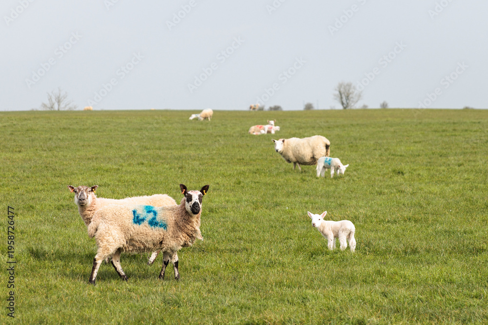Baby Sheep and family in grassland, Mendip Hills National Landscape, Somerset England #1958726477