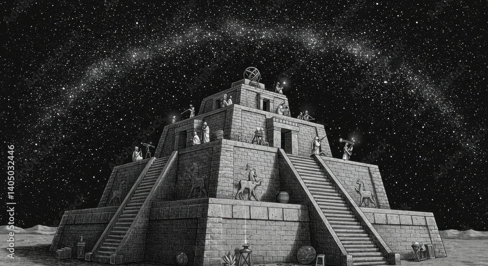 Babylonian Astronomers Observing Stars from a Ziggurat #1405032446