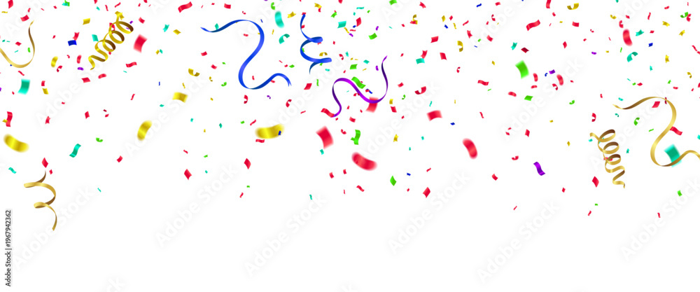 background with colorful confetti and streamers flying scattering across graceful wave infinity-like motion scene features various sizes and shapes #1967942362