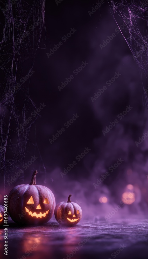 Background with halloween pumpkins, candles and autumn leaves on the wooden house porch halloween, wooden, pumpkin, jack-o-lantern, autumn, porch #1699401683