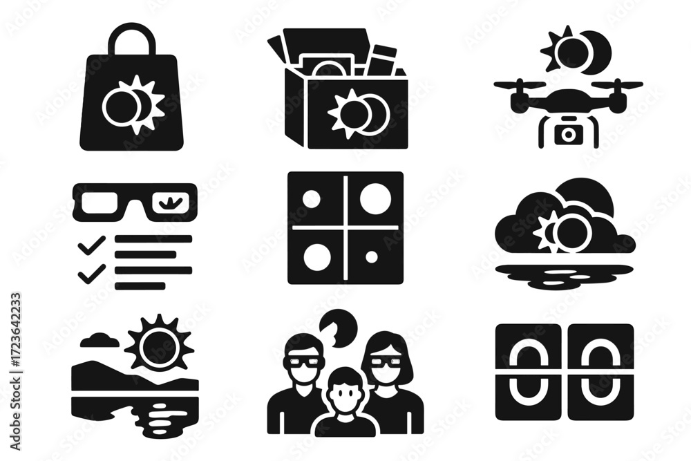 Bag panel family vector viewing kit countdown sunspot solar icon eclipse #1723642233