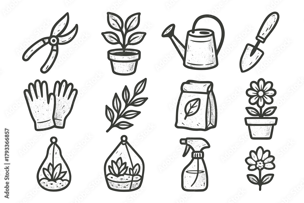 Bag vector leaf gloves soil set nature pot botanical can icon branch #1793366857