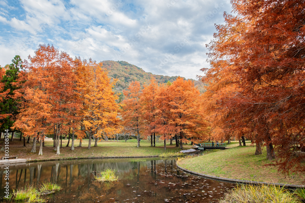Bald cypress (Taxodium distichum) in Ono park, Sanda, Hyogo prefecture, Japan in autumn #1803108104