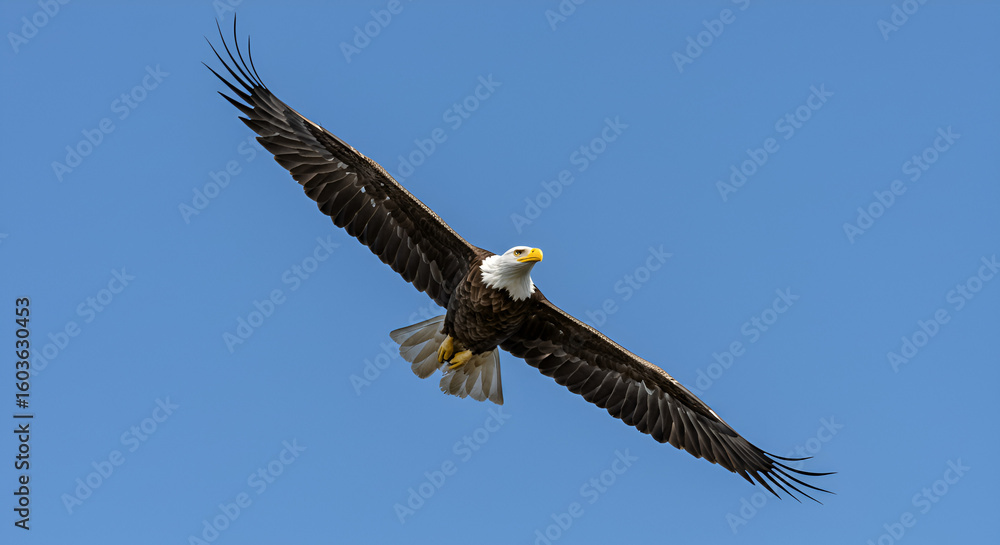 Bald eagle soaring against a clear sky #1603630453