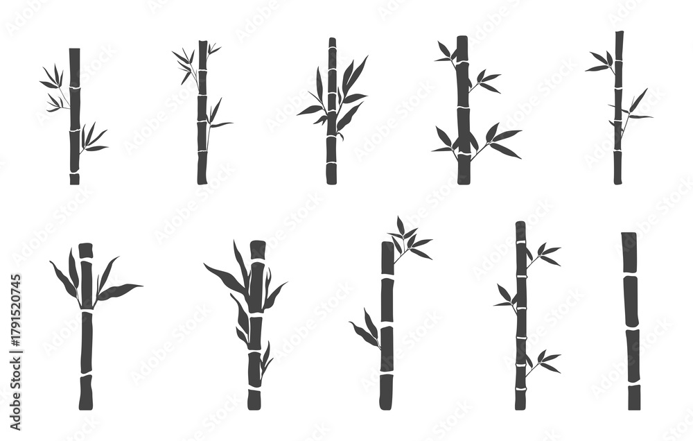 Bamboo silhouettes on white background, Bamboo svg, Bamboo tree silhouette, Bamboo tree svg, Bamboo plant silhouette, Bamboo vector. #1791520745