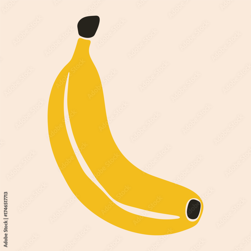 Banana fruit. Abstract yellow sweet exotic fruit, ripe fresh organic food raw tropical plant, cartoon simple botanical banana clipart for grocery design. Vector flat illustration #1746517713