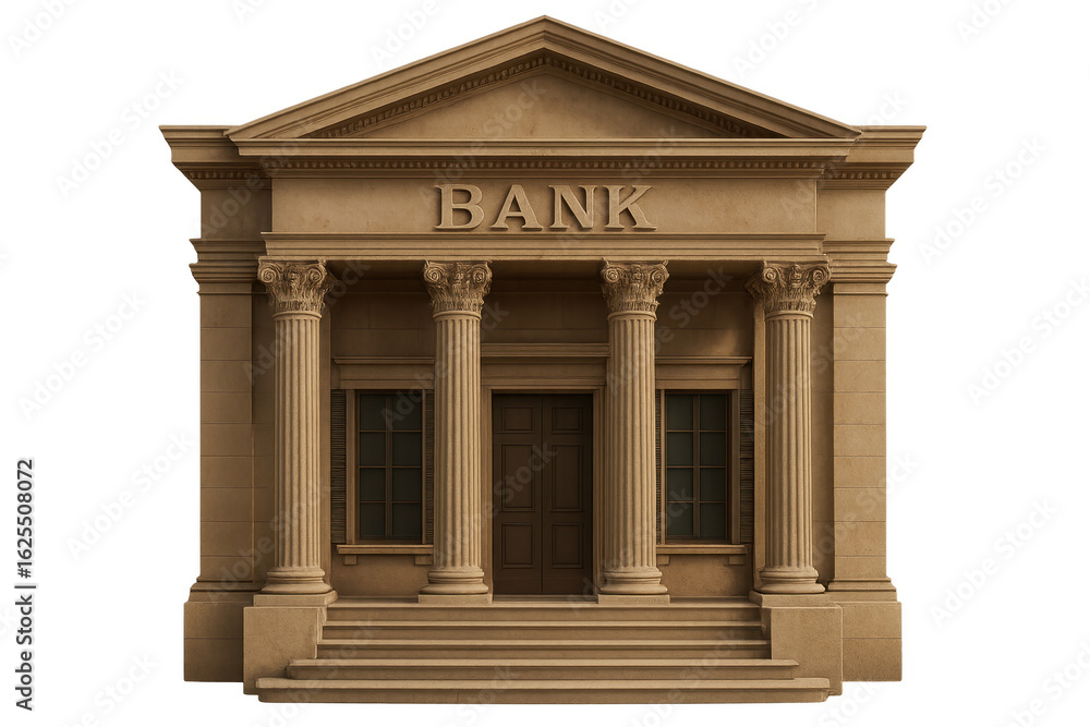Bank building with columns and transparent background promoting financial services #1625508072