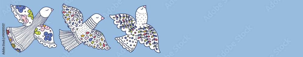 Banner with pigeons. Cute illustration with decorative birds. #1901811507