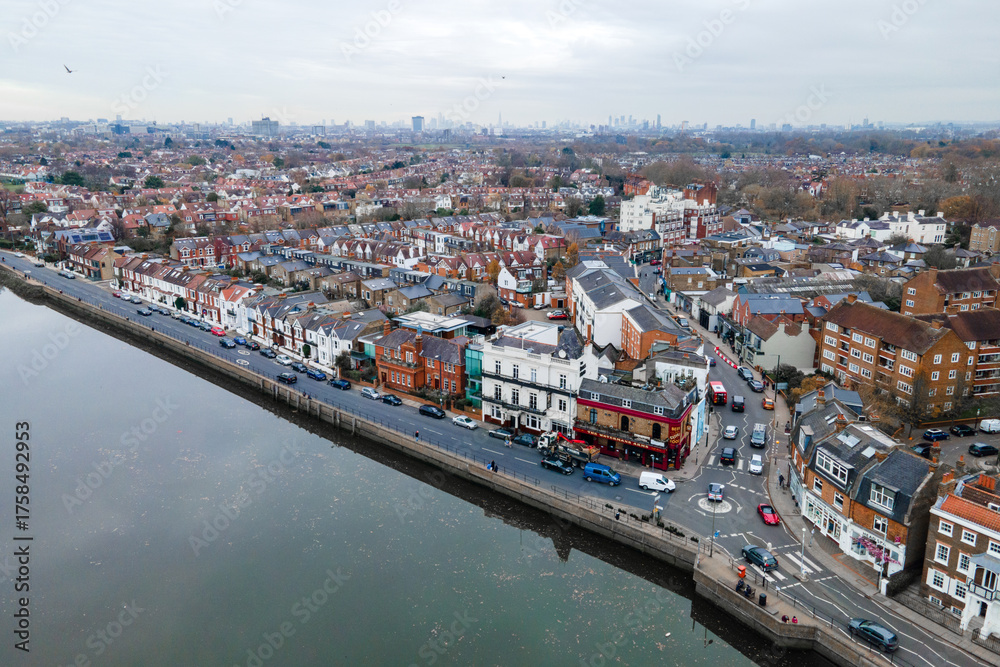 Barnes, London- Aerial view over the river Thames in south west London #1758492953