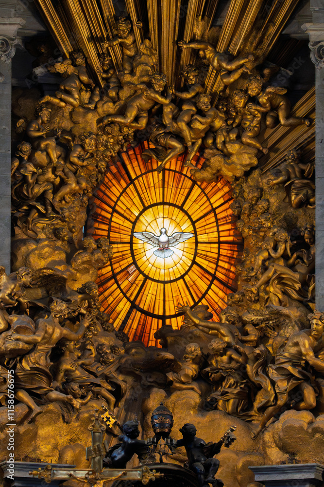 Baroque masterpiece with dove and angelic sculptures in Vatican #1158676675