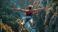 Base jumper in mid-air with mountain background #744862016