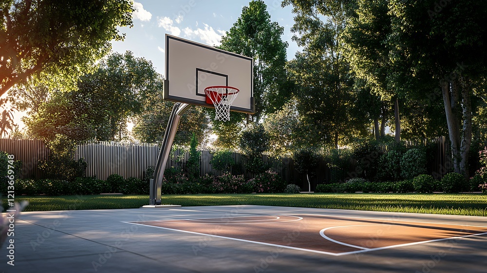 Basketball court with basketball hoop in the garden #1213669748