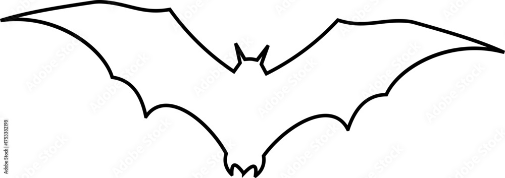 Bat icon vector illustration designed with sleek minimal lines and balanced silhouette, representing the mysterious nocturnal creature often associated with night, Halloween, mystery, and darkness. #1753382198