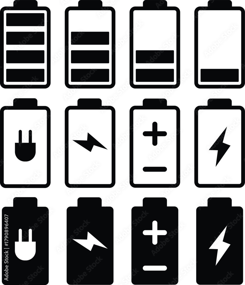 Battery charge color flat icon design, Battery indicator symbols, battery charge level sign, battery charge indicator battery illustration symbol, #1790896407