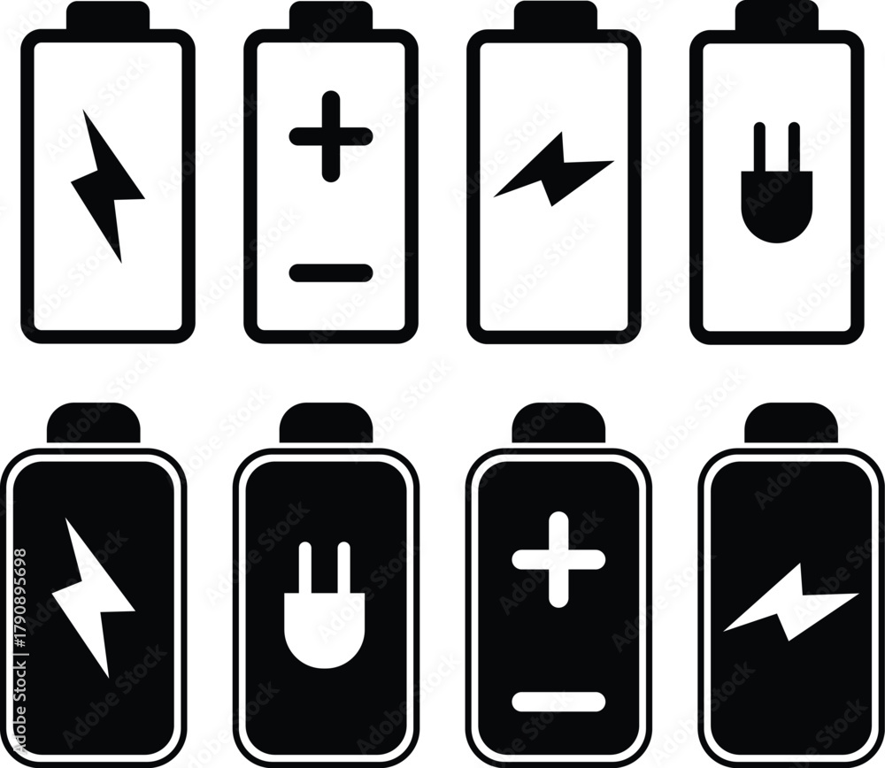 Battery icon set, Battery indicator symbols, battery charge level sign, Accumulator recharge sign business concept illustration, #1790895698