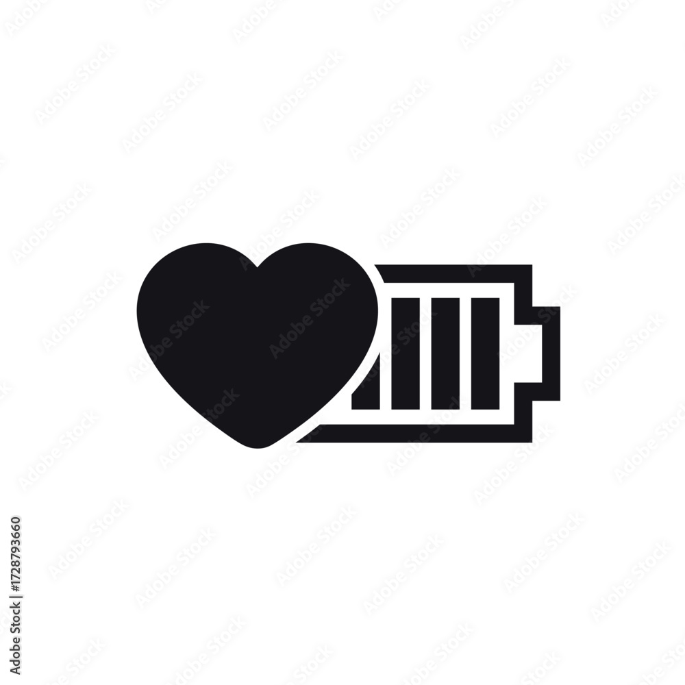 battery icon with a heart, energy and vitality pictogram #1728793660