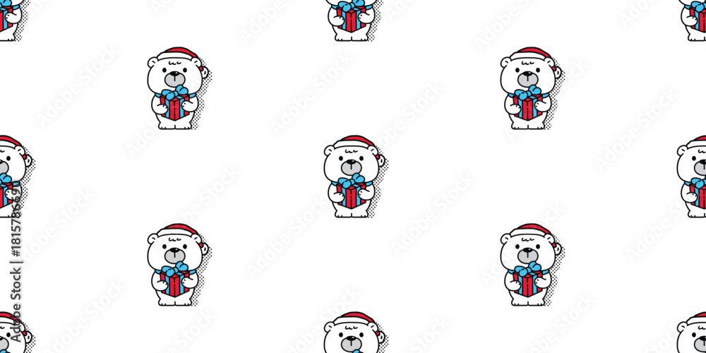 bear polar seamless pattern christmas santa claus hat gift box teddy vector pet doodle cartoon scarf isolated gift wrapping paper tile background repeat wallpaper illustration design #1815786690
