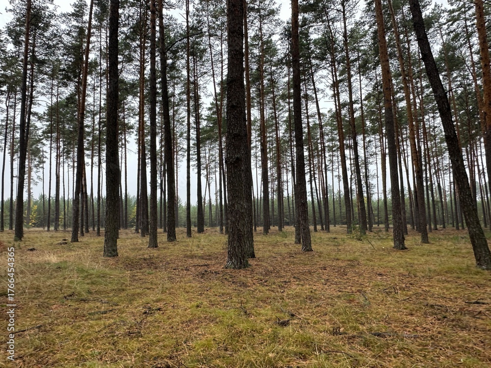 beautiful autumn pine forest in cloudy weather #1766454365