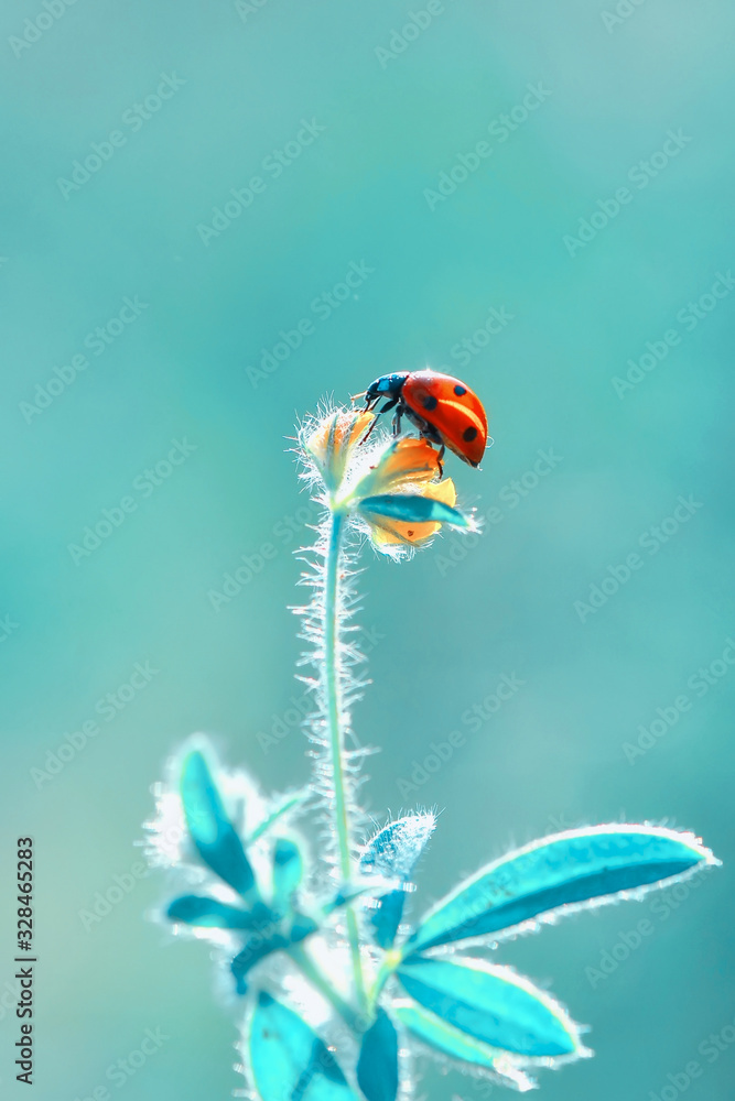 Beautiful ladybug on leaf defocused background #328465283
