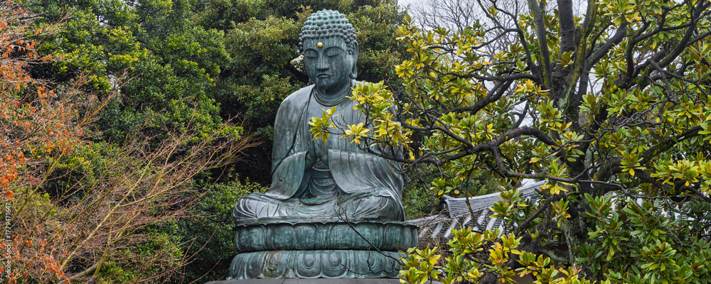 Beautiful large Buddha statue on lotus flower at Tennoji temple in Yanaka subsurb in Tokyo, Japan. #1779471647